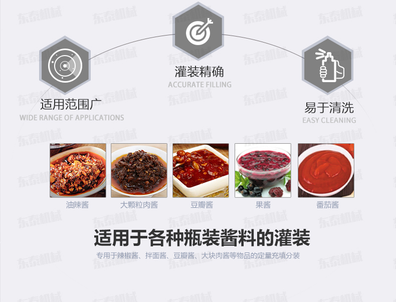 此小型辣椒醬灌裝機設備結(jié)構(gòu)簡單,維護方便;