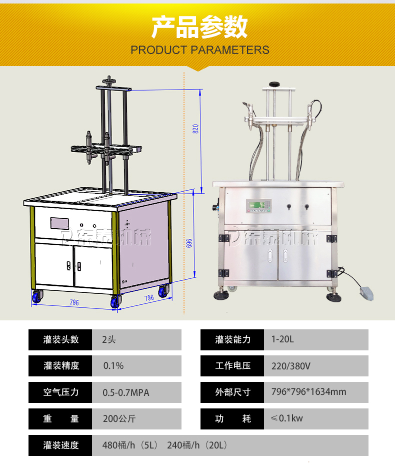 灌裝速度:480桶/h(5L);240桶/h(20L)